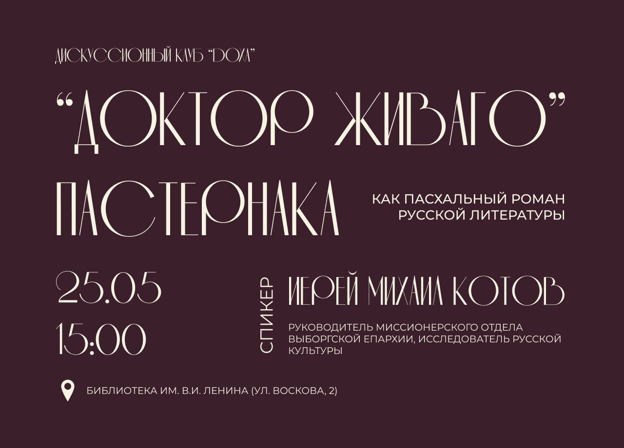Ждём вас на встрече, где мы вместе попытаемся понять, как «Доктор Живаго» становится романом о христианском выборе и свете Пасхи в самые тёмные времена.