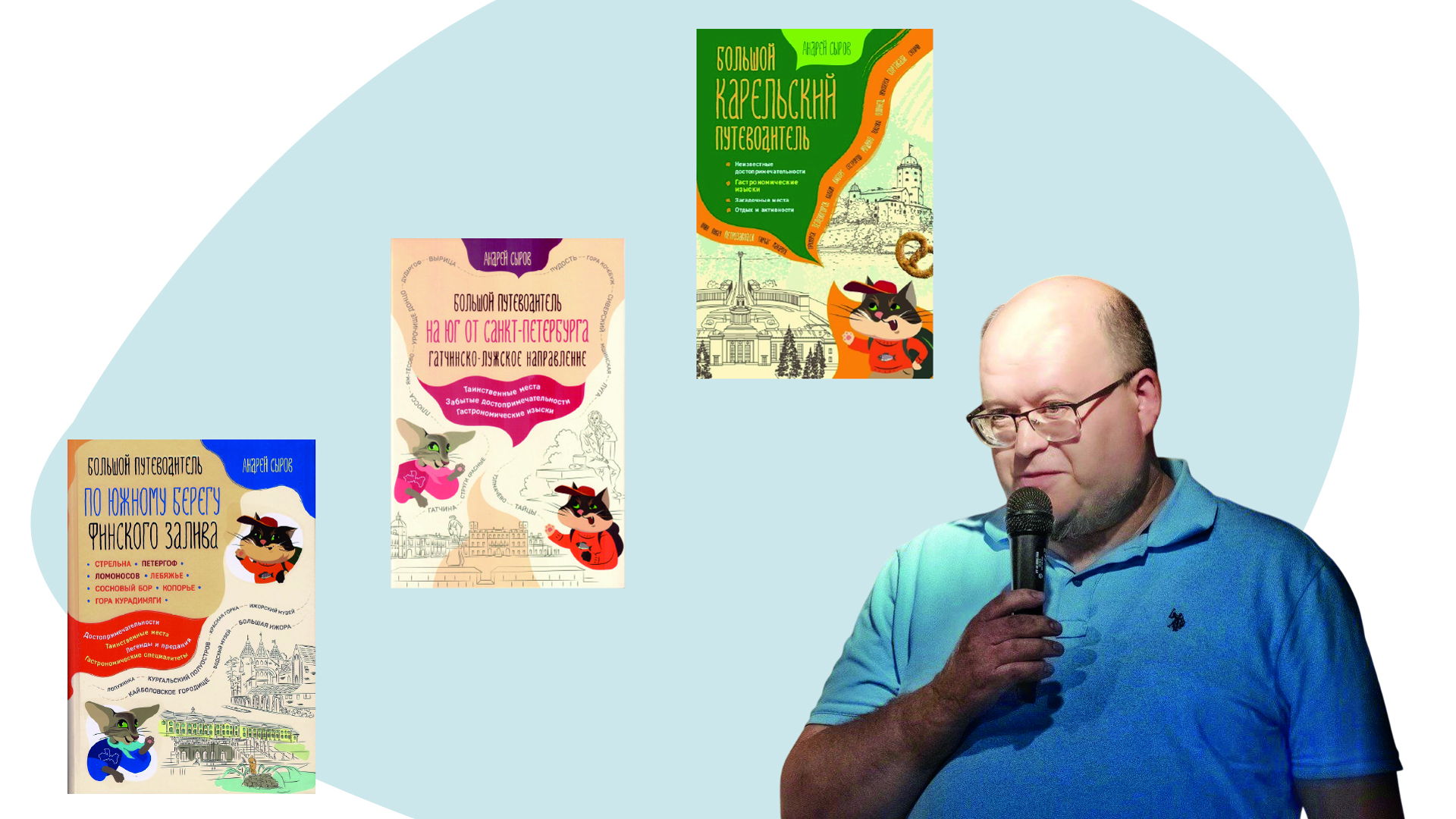 Андрей Сыров – историк, краевед, член Союза писателей России, издатель, чьи многочисленные путеводители пользуются неизменным спросом, презентует новинки издательства «Инкери», вошедшие в серию «Большой путеводитель», расскажет о своей деятельности и ответит на вопросы читателей.
